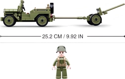 La combinaison du jeep, de la remorque et du canon offre de nombreux scénarios de jeu – de la reconnaissance à la défense de convoi. Des détails soignés et des proportions fonctionnelles donnent à la construction un aspect réaliste.