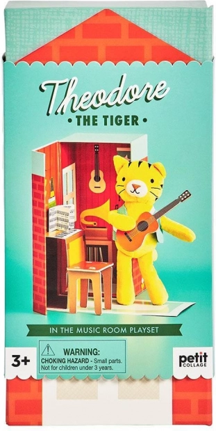 Tigre en peluche Theodor par Petit Collage : doux compagnon, vraies notes et scène de jeu 3D. Set musical créatif pour enfants dès 3 ans. Dimensions de l’emballage 12,5×25,5×10 cm.