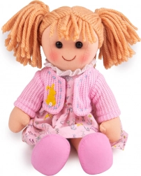 Ella, une poupée douce et câline, porte une robe printanière rose, un petit cardigan tricoté avec un motif de lapin et des chaussures roses assorties, ce qui en fait une compagne adorable pour le jeu quotidien. Ses vêtements se retirent et se remettent facilement, favorisant ainsi la motricité fine et la créativité.