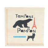 - Set complet : 23 tampons en bois + 3 encreurs (rouge, noir, bleu)
