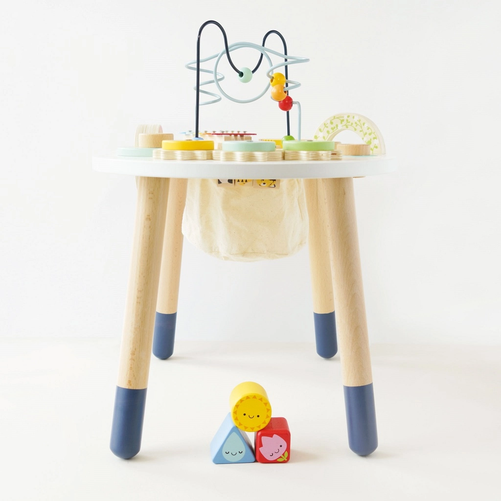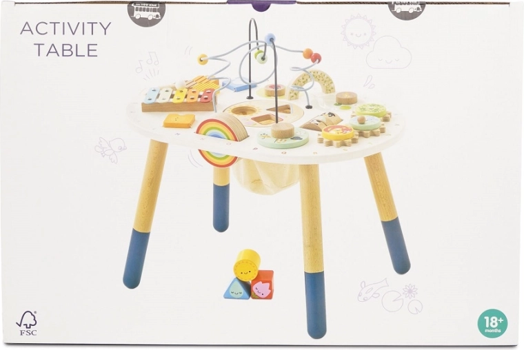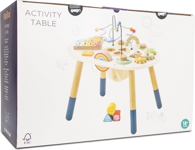 Découvrez une table d’activités en bois de qualité pour tout-petits de la collection LE TOY VAN Petilou, qui favorise la motricité fine, le développement sensoriel et le jeu créatif. Elle propose un labyrinthe de perles, un jeu d’encastrement, un xylophone, des engrenages et d’autres éléments. Fabriquée en bois certifié FSC® et peinte avec des peintures non toxiques pour un amusement sûr et durable.