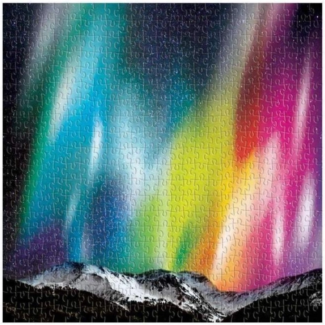 Des couleurs vibrantes et une scène détaillée des lumières du Nord au-dessus des montagnes transforment l’assemblage en une expérience visuelle captivante.