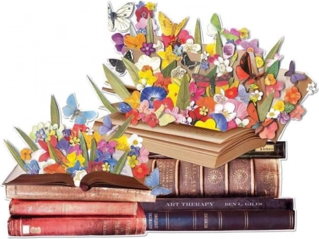 Plongez dans un univers créatif où la littérature rencontre la nature. L’artiste Ben Gilles a insufflé au motif des livres en fleurs un collage ludique, des couleurs et de la lumière, conférant à l’image finale une atmosphère unique. Le puzzle terminé présente une forme unique, découpée jusqu’aux contours du motif, mettant en valeur chaque détail.