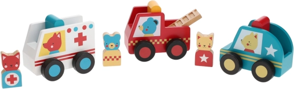Offrez à vos enfants des heures de jeu et de créativité avec cet ensemble de voitures de secours. Chacun des véhicules robustes et résistants est fabriqué en bois 100% certifié FSC®, garantissant que le matériau provient de forêts gérées de manière responsable.