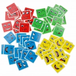 Un jeu logique amusant pour enfants et adultes qui développe la reconnaissance des émotions, la pensée logique et la motricité fine. Faites pivoter les cubes en bois colorés et, selon les cartes, composez l’expression de visage correcte – gagne celui qui crée le plus de combinaisons en un minimum de temps. Fabrication sûre en bois, 64 cartes d’expressions et 16 cubes en quatre couleurs pour des heures de jeu et d’apprentissage sans fin.