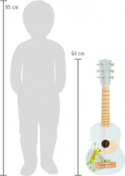 Sont incluses des partitions et deux médiators pour petites et grandes mains, afin que les enfants puissent jouer immédiatement. La guitare favorise le développement naturel de la perception acoustique, la coordination des doigts et le sens rythmique.