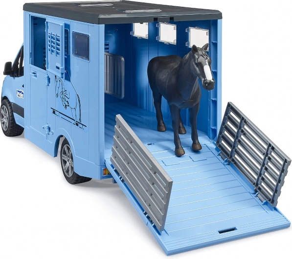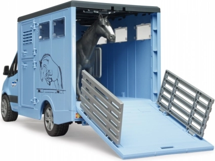 Ce transporteur de chevaux finement détaillé s’inspire du célèbre utilitaire MERCEDES‑BENZ Sprinter. Les enfants adoreront la cabine fonctionnelle avec portes ouvrantes, la caisse réaliste pour un transport sécurisé et les nombreuses options de jeu – de la montée par la rampe jusqu’à la cloison adaptée à deux chevaux.
