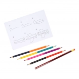 Guide « pas à pas », plaque de dessin, 4 crayons de couleur double pointe (8 couleurs), crayon avec gomme, trousse métallique zippée