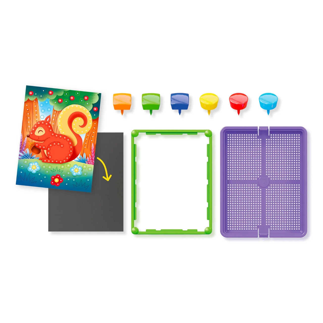 Découvrez le plaisir créatif avec la mosaïque Quercetti Pin Bosco, qui aide les enfants à développer la motricité fine, la coordination œil–main et la pensée créative. Le set comprend 8 cartes imprimées avec des motifs forestiers, 300 chevilles colorées en 2 formes et 6 couleurs, une plaque perforée solide, un cadre avec poignée et un panier de rangement pratique pour un rangement facile.