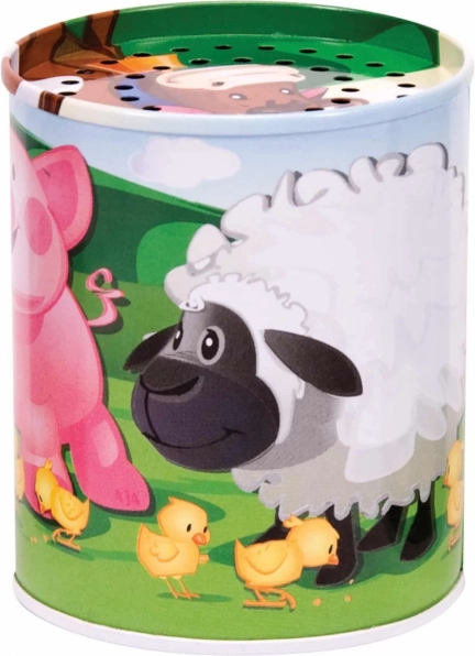 Schylling Plechovka avec sons est le jouet parfait pour les enfants, leur permettant de découvrir le monde de la ferme. À travers un design simple et des effets sonores, les enfants apprennent à reconnaître les sons des animaux et à les associer aux bons animaux. En tournant la boîte métallique, des sons tels que ceux des vaches, moutons ou poussins sont activés, ce qui stimule l'imagination des enfants.