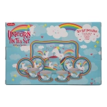 L’ensemble contient tout le nécessaire pour une parfaite collation enfantine – tasses avec sous-tasses, assiettes à dessert, théière avec couvercle et plateau de service pratique. Le motif licorne, tout mignon, garantit que chaque goûter se transforme en expérience magique.