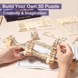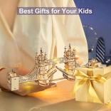 Construisez l’emblématique Tower Bridge sous forme de modèle en bois détaillé avec éclairage LED. Vous attendent 113 pièces découpées avec précision, une difficulté moyenne et un montage ludique d’environ 1,5 heure. Le modèle terminé brille joliment et devient une décoration élégante pour la chambre ou le bureau.