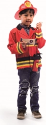 Le costume de pompier pour enfants BIGJIGS TOYS offre tout ce dont les petits pompiers ont besoin pour une mission de sauvetage palpitante. Veste rouge vif à manches rayées avec emblème, casque réglable (49–55 cm) et accessoires comme un extincteur en bois, un talkie-walkie et un mégaphone donnent au jeu une dimension réaliste.
