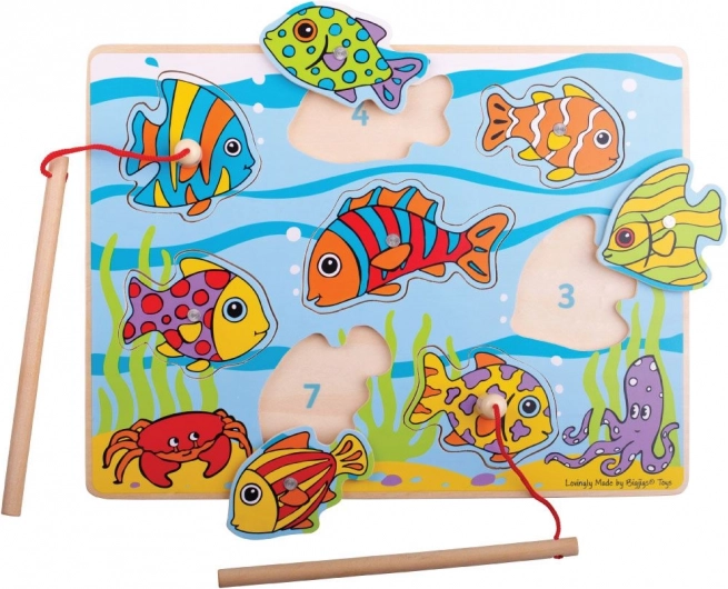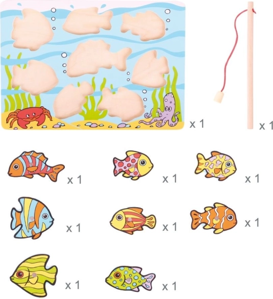 Jeu en bois amusant pour les tout‑petits, où les enfants pêchent des poissons multicolores à l’aide d’une canne magnétique et les replacent dans les bons trous. Favorise la motricité fine, la coordination œil‑main et la concentration. Fabriqué en bois de qualité provenant de sources responsables, conforme aux normes de sécurité européennes. L’ensemble comprend 10 pièces.