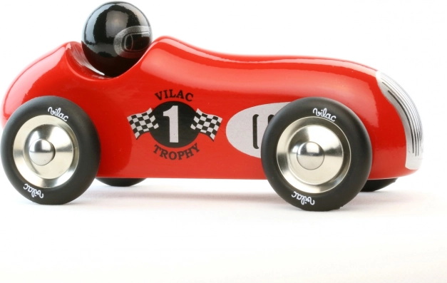 Voiture de course historique rouge Vilac est un excellent choix pour les enfants et les adultes. Fabriquée en bois laqué de qualité et en métal, cette voiture est idéale pour jouer ainsi que pour une décoration élégante.