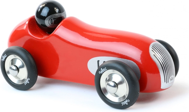 Découvrez le charme de la voiture de course historique rouge de la marque Vilac. Cette voiture est fabriquée en bois laqué avec des détails métalliques et des roues en caoutchouc, assurant un mouvement fluide. Elle est conçue à la fois pour jouer et comme élément décoratif dans les intérieurs des enfants et des adultes.