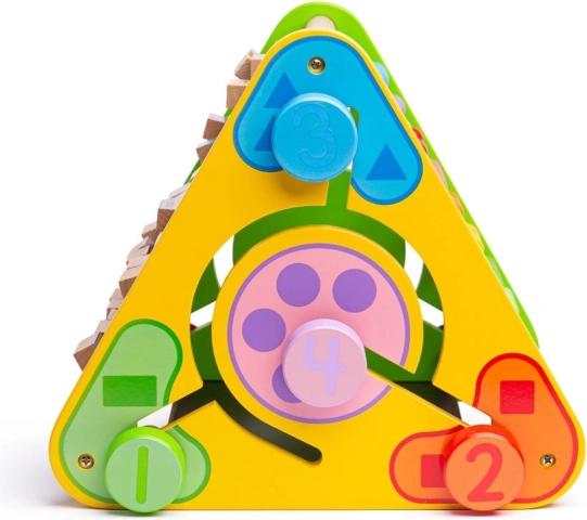Ce triangle d’activité BIGJIGS BABY associe apprentissage et jeu dans un ensemble compact et résistant. Grâce à sa fabrication solide, aucune pièce ne se perd et les enfants peuvent explorer en toute sécurité les couleurs, les formes, les chiffres et leurs premiers mots d’anglais. Son design multicolore attire l’attention et favorise la concentration.
