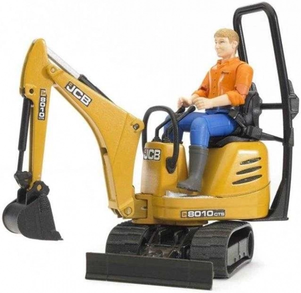 La remorque avec rampes rabattables permet de transporter facilement la mini-pelle jaune, qui est équipée d'une cabine rotative et d'un bras fonctionnel avec godet. La mini-pelle est entièrement compatible avec d'autres figurines Bworld, ce qui en fait un complément parfait pour tout chantier de jeu d'enfants.