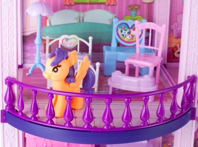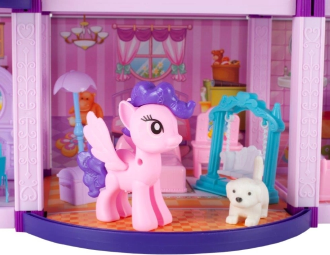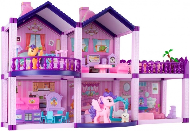 Une maison de poupées unique fabriquée en plastique, idéale pour de nombreuses heures de jeu pour chaque fille et ses amies. La maison est parfaite pour les poneys et le chien inclus dans l’ensemble, ainsi que pour les poupées. Chacun se sentira comme dans un palais dans cette résidence. La grande maison comprend également de plus grands meubles, ce qui rend le jeu plus facile et plus réaliste. Les intérieurs reflètent parfaitement une vraie maison.