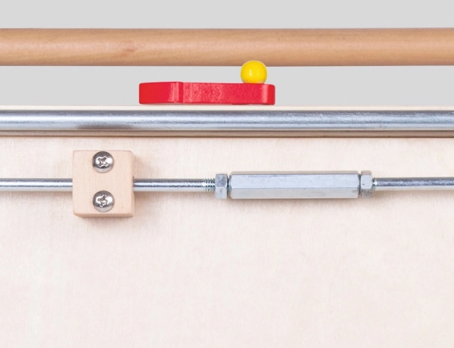 La structure en bois et le design multifonctionnel favorisent le développement de la créativité et de la motricité grâce au système de freinage intégré, au tableau pour dessiner et aux horloges éducatives.