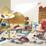 - Accessoires riches : 2 petites voitures et un hélicoptère inclus
