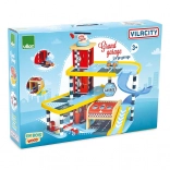 Découvrez le plaisir de jouer avec le garage en bois VILAC Vilacity ! Ce grand garage à étages propose un ascenseur fonctionnel, des portes coulissantes, une barrière de parking, une pompe à carburant et des brosses de lavage. Sont inclus 2 petites voitures et un hélicoptère, une compatibilité totale avec la collection VILACITY et une fabrication respectueuse de l’environnement.