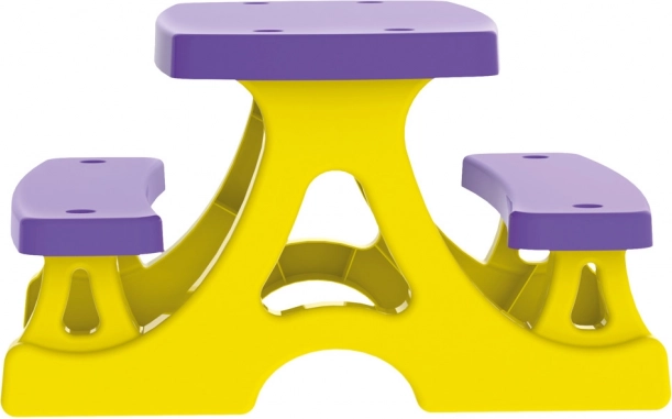Table de pique-nique en plastique avec bancs, jaune‑violet