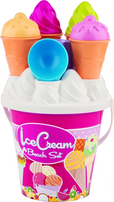 Découvrez cet ensemble coloré pour sable avec motif de glace qui apporte joie et favorise le jeu créatif des enfants. Idéal pour jouer à la plage ou au parc, cet ensemble est fabriqué en plastique de qualité et comprend :