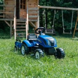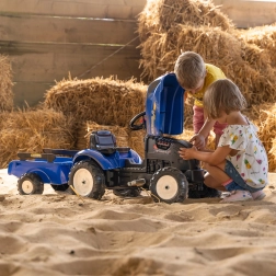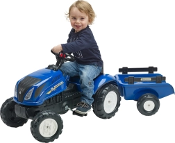 Falk tracteur à pédales New Holland avec remorque et capot ouvrant dès 2 ans