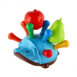 Ce jouet est équipé de dix trous sur le dos du hérisson où les enfants peuvent insérer des "piquants" colorés. L'ensemble comprend également une pomme et une poire qui peuvent être placées parmi les piquants pour offrir d'autres variations de jeu. Pour encore plus de plaisir, le hérisson est doté de quatre roues manœuvrables et d'un trou pour attacher une corde, ce qui en fait également un jouet à tirer.