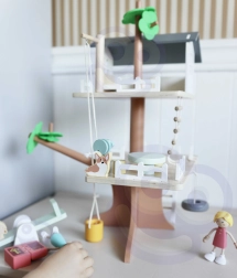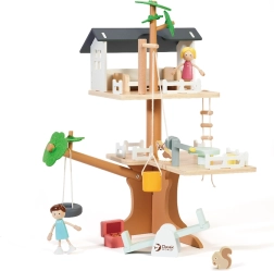 Le coffret contient 31 éléments dont 2 figurines d’enfants, 2 animaux et des accessoires tels que balançoire, balançoire-pneu, balançoire d’équilibre, lit, table, chaises et coffre au trésor. Le bois naturel soigneusement travaillé aux couleurs douces est durable et agréable au toucher.
