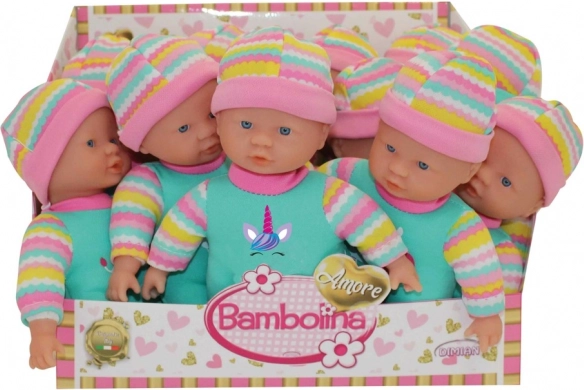 La poupée Bambolina Amore est une excellente compagne pour le jeu quotidien. La combinaison d’un corps souple et d’un vinyle de qualité pour la tête, les bras et les jambes assure un aspect naturel et un toucher agréable. Les enfants profiteront de moments de câlins, de soins et d’invention de leurs propres histoires.
