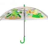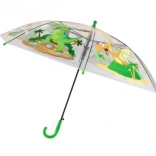Un joyeux parapluie pour enfants avec une toile transparente et des motifs colorés de dinosaures transforme les jours de pluie en amusement. Grâce à l’ouverture automatique, à sa structure légère et à sa poignée verte confortable, il est facile à utiliser et tient bien dans la main des enfants.