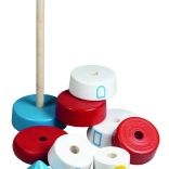 L’empilage sur une tige entraîne la coordination œil–main, le tri par forme et par taille ainsi que la perception des couleurs. Un premier jouet éducatif idéal pour les tout-petits.