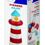 Le phare en bois sous forme de pyramide à empiler invite les enfants à enfiler les pièces sur la tige selon leur forme et leur taille. Le jeu soutient intuitivement la coordination œil–main, la patience ainsi que la perception des couleurs et des formes, tout en stimulant agréablement le toucher grâce à sa surface lisse.