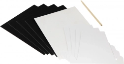 4 x feuilles de papier, 1 x stylet, 1 x pochoir, 4 x supports