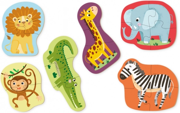 Dodo Puzzle Animaux : 6 puzzles pour enfants avec 2–4 pièces, formes irrégulières, favorise la motricité et la logique. Premier puzzle idéal pour les préscolaires.