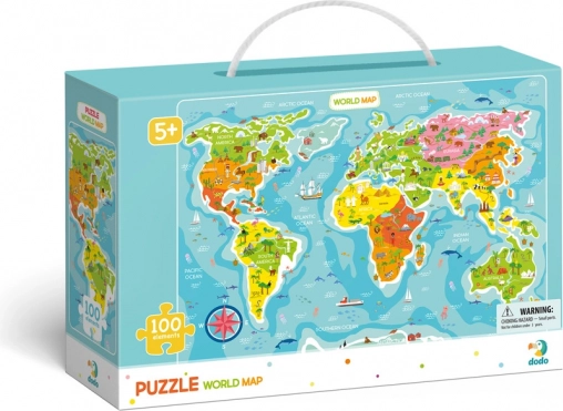 Découvrez le monde en jouant avec le puzzle pour enfants DODO. La carte du monde colorée avec des noms en anglais motive les enfants à connaître les pays et les continents tout en enrichissant naturellement leur vocabulaire. Grâce à ses 100 pièces solides, l’assemblage est ludique et d’une difficulté adaptée.