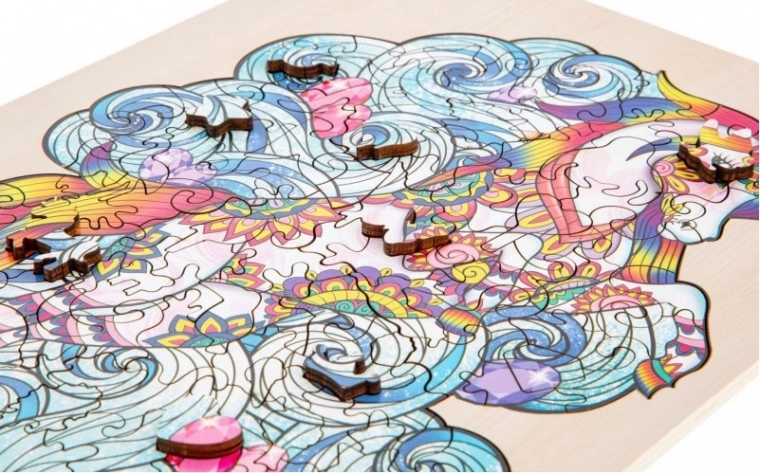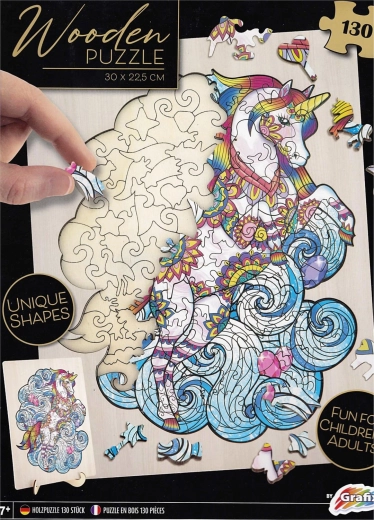 Découvrez le puzzle en bois de contour sur le thème de la licorne de GRAFIX, qui ravira enfants et adultes. Vous y trouverez 130 pièces de formes variées, une plaque de fond avec contours pour un assemblage facilité et un support pour exposer l’image terminée.