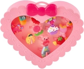 L'ensemble de bagues est idéal pour les petites princesses qui aiment la mode et veulent avoir une bague différente à chaque doigt. Chacune des 12 bagues a un design unique qui peut inclure des fleurs, des fruits, des nœuds ou des animaux.