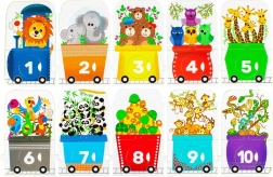 Le puzzle pour enfants en forme de train représente un défi amusant pour les petits explorateurs. Il se compose d'une locomotive et de neuf wagons, chacun avec un nombre différent d'animaux :