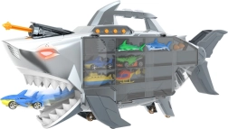 Partez à l’aventure avec le transporteur requin, qui peut contenir jusqu’à 24 petites voitures et offre lumières, sons et mâchoires ouvrantes. Grâce à sa poignée et ses roulettes, il est facile à transporter. Il comprend aussi une rampe de vitesse et un lance-roquettes ainsi que de nombreux accessoires pour jouer immédiatement.