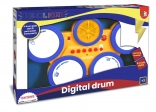 Batterie numérique – 4 tambours avec 12 instruments de percussion prédéfinis, 6 styles musicaux (morceaux de démonstration), vitesse réglable, contrôle du volume, rétroéclairage LED rythmique. Fonctionne avec 3 piles R6/AA 1,5 V. Dimensions 39 × 25 × 6,5 cm.
