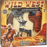 Profitez de l'amusement avec cet ensemble cowboy comprenant un étui en cuir, une ceinture, une étoile de shérif, des menottes et un revolver richement gravé.