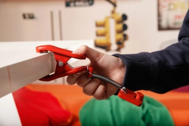 Les unités rouges et les pinces créent un réseau de « lasers » bleus. Les enfants développent leur agilité et leur coordination tout en s’amusant dans un environnement domestique sécurisé.