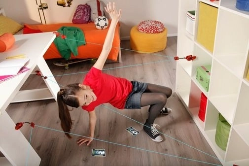 - Action palpitante à la maison – créez un labyrinthe « laser » n’importe où dans la pièce.