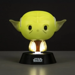 Lampe LED 3D stylée en forme du maître Yoda de la saga STAR WARS, offrant un éclairage d’ambiance agréable pour le bureau, la table de nuit ou le coin gaming. Grâce à ses dimensions compactes et à son alimentation par piles, vous pouvez la placer facilement où vous voulez. Produit officiellement licencié par Paladone, c’est un excellent cadeau pour tout fan.