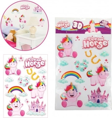 Autocollants muraux licorne XXL 3D dans un sachet 38x63cm