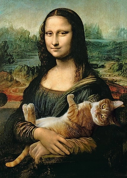 Le motif de Mona Lisa avec le chat Mruczek ajoute un élément amusant et ludique à la scène artistique classique.