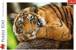 Puzzle avec un portrait de tigre fascinant composé de 500 pièces. Une fois assemblé, il forme une image de 48 x 34 cm. Idéal pour les amoureux des animaux et des puzzles.
